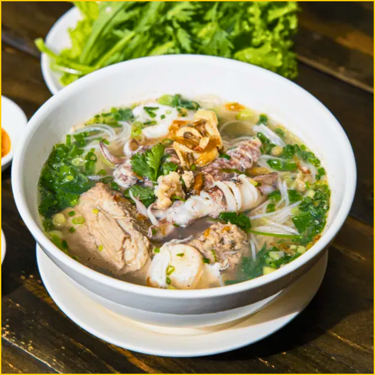 Spare Ribs Noodle Soup serves with vegetable and rice noodles.