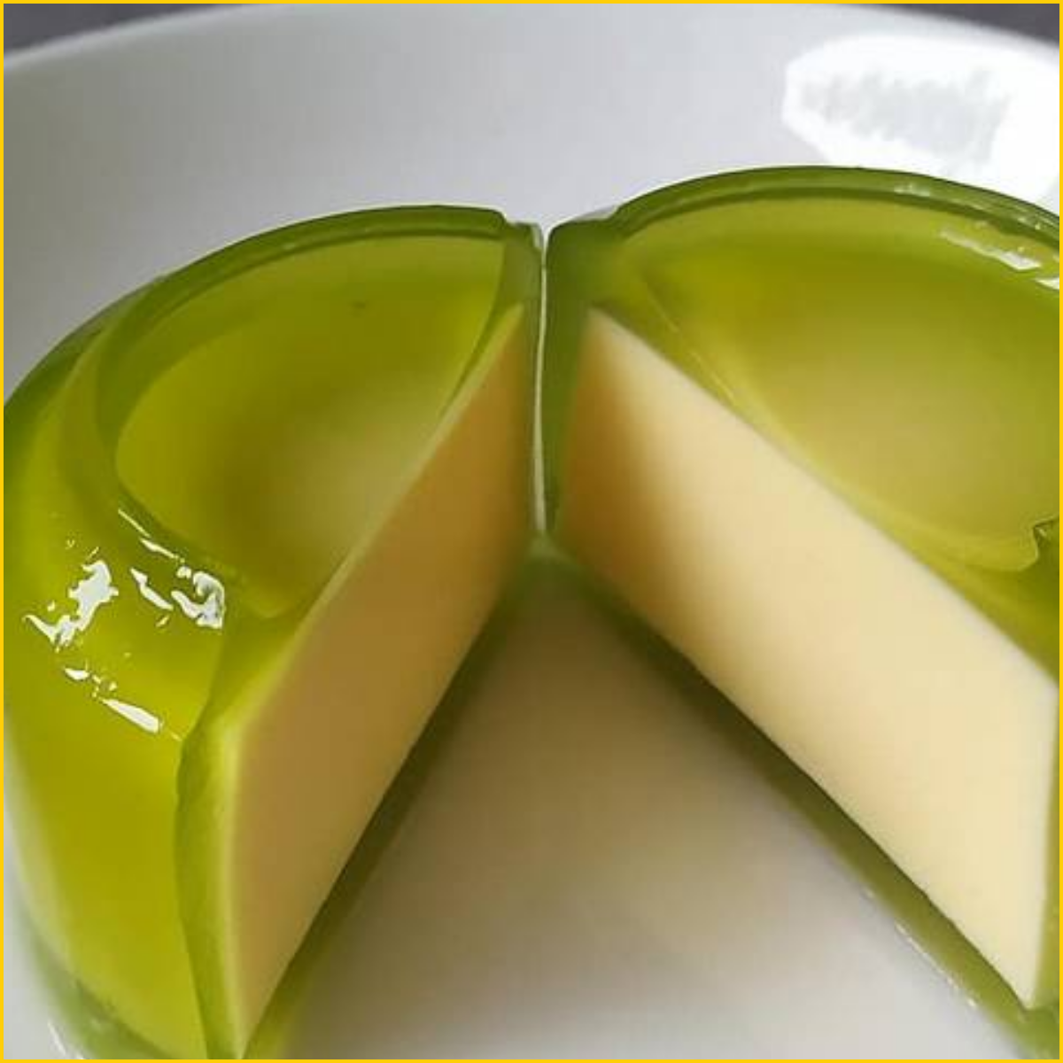 Caramel Flan topped with coconut and pandan Jelly